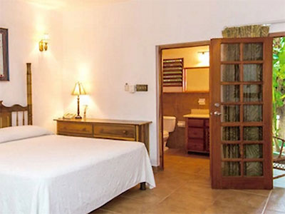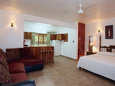 The Garden House is the second building from the entrance, yet less than 1 minute away from the restaurant and beach. The lower level consists of 3 Garden Studios, each uniquely decorated but similar in style. Though smaller than the 1-Bedroom Garden Apartment (upper level), these studios are spacious and efficient, offering excellent value. Each feature a kitchen, living space, and king bed in a common room, as well as a private ensuite bathroom with shower. French double doors open onto private patios with outdoor seating and access to the main walkway. Garden Studio I (closer to entrance), II (centre), or III (closer to beach) can be requested; however, please note that in order to ensure maximum availability, Garden Studio assignments are based on corresponding guest arrivals and departures.