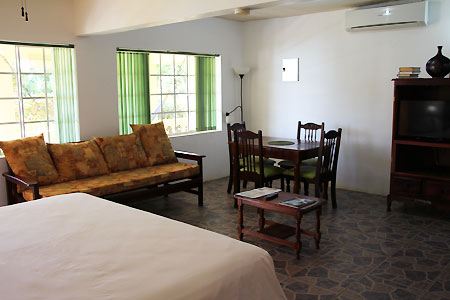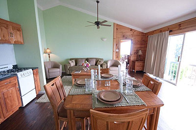 These cozy 1-bedroom cottages offer a quiet setting with garden and cliff views, full kitchens and eat-in areas, flat screen TVs with local channels, and small verandas. Cottage 1-6 and 8 offer morning and afternoon sun while Cottage 7 boasts morning sun and afternoon shade. A/C or Fan cooled cottages are across the road from the sea.